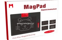Za pomocą długopisu magnetycznego przyciągamy z wnętrza pudełka metalowe kulki, które tworzą na powierzchni wzory. Kulki nie wypadają.