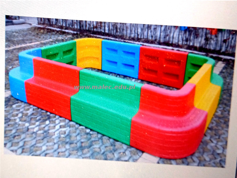 Piaskownica z tworzywa sztucznego odpornego na zmienne warunki atmosferyczne.