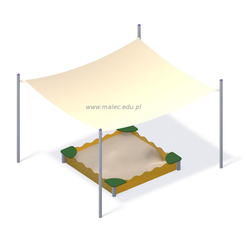 Zadaszenie prostokątne o konstrukcji stalowej malowanej proszkowo, Żagiel poliestrowy.