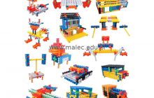 Znajdują się tu zestawy klocków plastikowych o ciekawych kształtach, kolorach i o różnej wielkości.