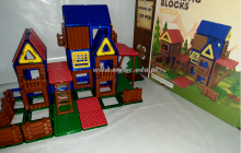 Zestaw magnetycznych klocków, z których można stworzyć piękny wiejski domek.