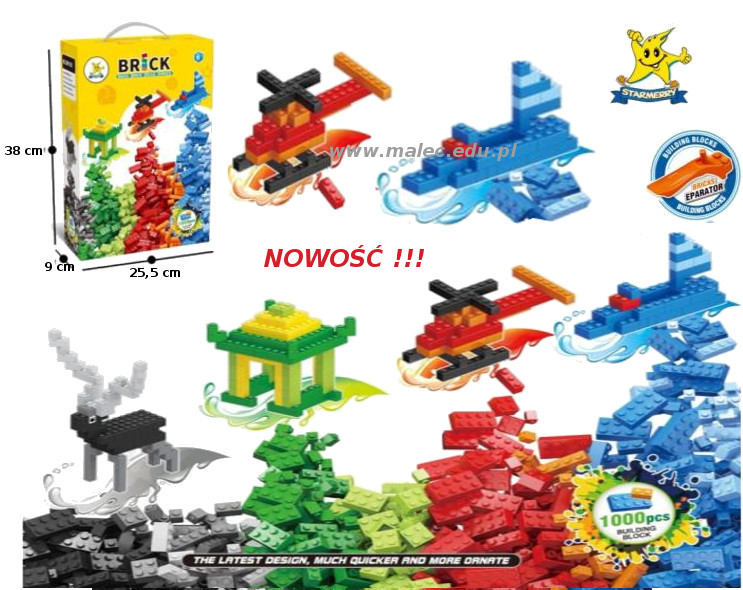 Zestaw 1000 szt klocków. Wym.: opakowania: 25,5 x 38 x 9 cm.