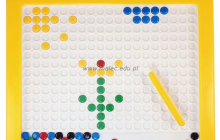 Magpad Dots to najnowszy wzór tablicy magnetycznej. Dzieci ćwiczą koncentrację i kreatywność. Za pomocą magnetycznego długopisu dzieci przenoszą kolorowe magnesy na tablicę tworząc kolorowe obrazki. Całość zapakowana w kolorowe pudełko.