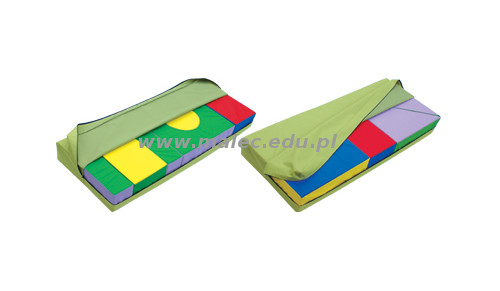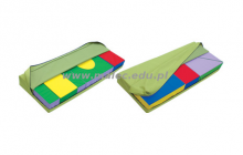Każdy pokrowiec wykonany ze skay, zapinany jest na zamek – ułatwia to przechowywanie kształtek, i zapobiega ich wysuwaniu np. podczas ćwiczeń.