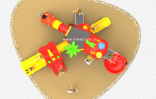 Plac zabaw o wym.: 610 x 400 x 350 cm. Słupy nośne o średnicy 76 mm.