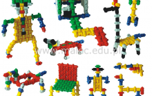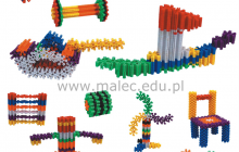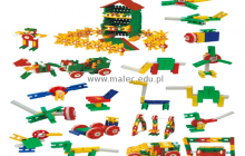 Znajdują się tu zestawy klocków plastikowych o ciekawych kształtach, kolorach i o różnej wielkości.